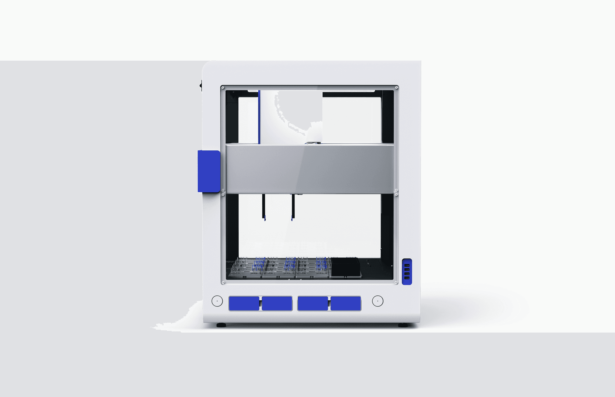 An automated assay workstation designed for laboratory environments where precision is non-negotiable. The design balances clinical accuracy with ergonomic accessibility โ reducing fatigue and error across extended research sessions.